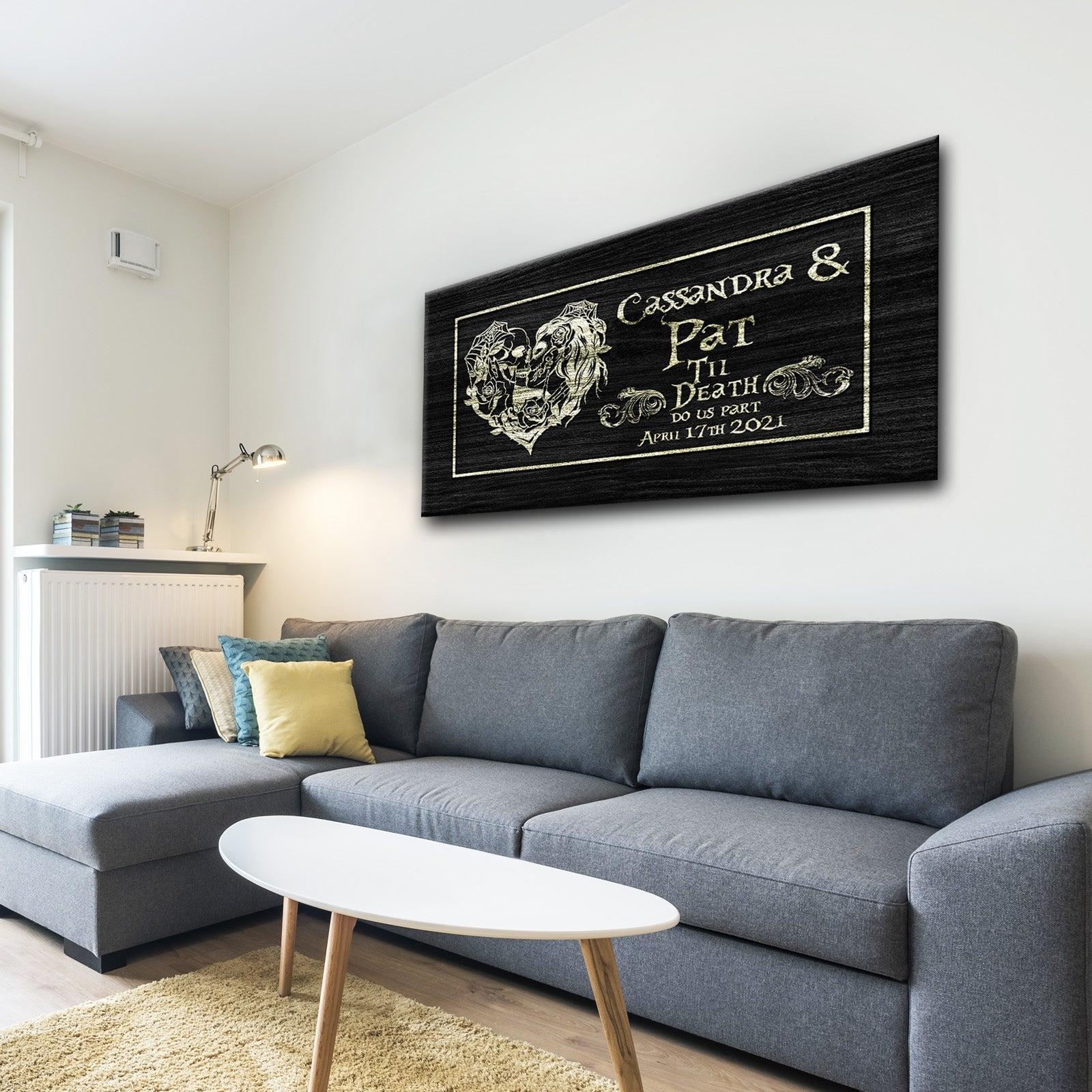 Celebrate your undying affection with this "Till Death Do Us Part" sign— a perfect blend of gothic art and heartfelt symbolism, and a memorable customized anniversary gift that says love lasts a lifetime, and beyond.
