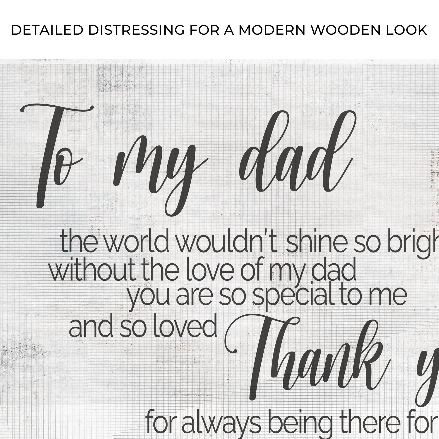 A father's love is truly transformational. It's the kind of love that can change a life for the better, no matter what challenges come along the way. For this reason, To My Dad Thank You Happy Father's Day canvas wall art is the perfect gift to show your papa just how much he means to you. This To My Dad Thank You Happy Father's Day sign is more than just a sentimental gesture - it's a reminder of the power of a father's love. With its simple and heartfelt message, To My Dad Thank You Happy Father's Day canvas wall art makes it easy to express how much you appreciate everything your dad has done for you.